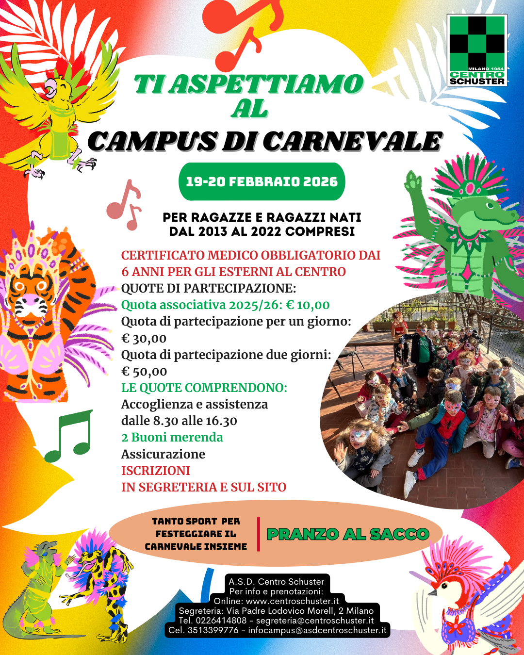 diventando socio dell’A.S.D. Centro Schuster o dell’associazione ex-allievi